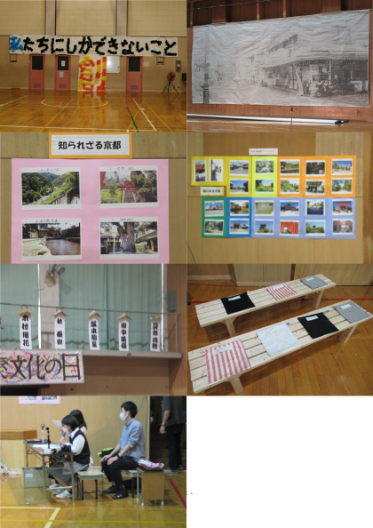 2年生は、今は見えませんが、大映商店街をモザイクアートで表現したものと、職業に関するパネルを作成し、ステージにセッティングしています。さきほどの劇の背景に使用されています。展示係が一生懸命作ってくれました。