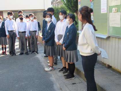 今朝も第47期生徒会本部執行部立候補者の朝のあいさつ運動があり、元気なあいさつが飛び交っていました。