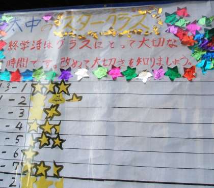 評議会による「KJM21」運動でです。終学活にけじめをつけ,毎日星3つを目指しています。