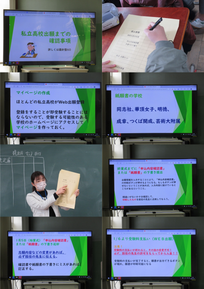 12月15日 3年進路学活「私立高校出願について」