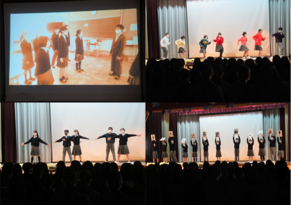 最初を飾るのは、生徒会本部企画です。3年生の皆さんは、前のスクリーンにご注目下さい。