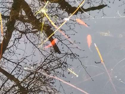 何度か様子を見に行くと、キレイにしてくれたビオトープには無事金魚が育っていました!