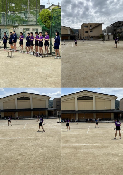 女子ソフトテニス部は、近衛中学校で春季大会個人戦に挑みました。男子と同じく、代表ペアが出場。結果は、シード選手を含め、AYペア、UHペア、IHペア、SKペア、以上4ペアが個人戦(2)への出場を決めました。