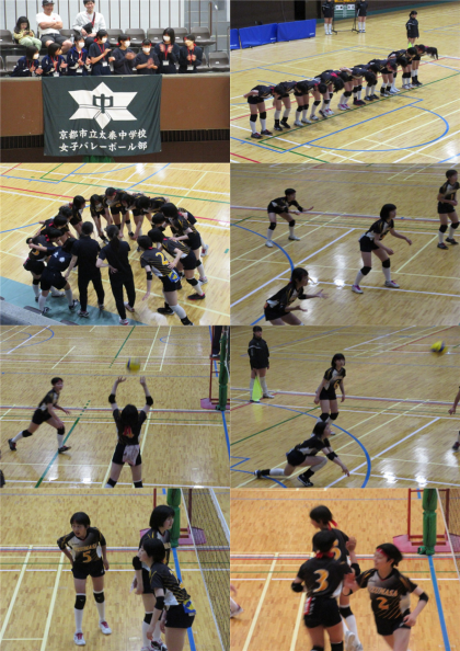 バレー部は京都市体育館で準決勝に挑みます。全市で4チームだけが、この体育館で試合ができるわけです。気合いの入った表情で練習しています。