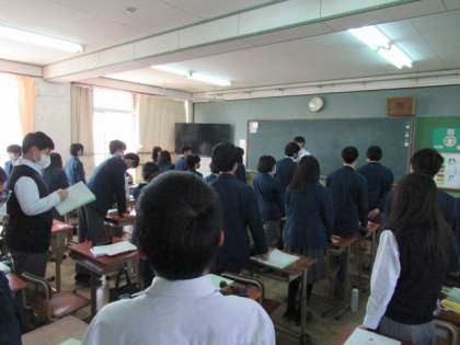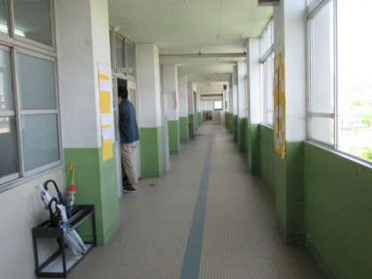 チャイムが鳴る前の廊下には誰もいなくて、教室では授業準備を終え、号令を待っていました!(廊下で見えている背中はY先生です!)