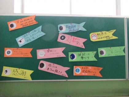 5月19日 1年掲示板のこいのぼりメッセージ