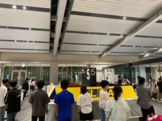 大きな荷物の受け取りを、各クラス選抜隊がしてくれています。荷物のタグの色でクラスごとに分けています。