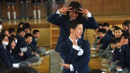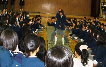 「パリ・コレ」ならぬ「ウズ・コレ」でしょうか。3C活動の取組の一つとして,昼休みに,制服の正しい着こなし方を呼びかけるために,評議員会主催でファッションショーが行われました。すごい観衆!拍手と笑いの渦!正しい服装をビシッと決めてのポージングは,カッコイイ!!