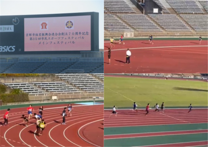 11月3日に行われた京都市民スポーツフェスティバルに参加した太秦チームに、陸上部3年のFさん、Uさんが参加し、800mリレーに出場しました。
