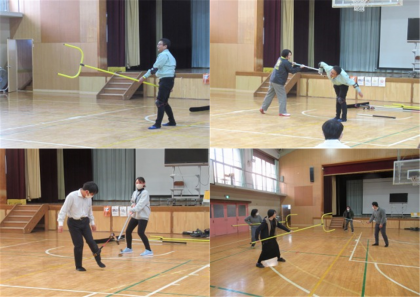 昨日の放課後、不審者対策としてさすまたの使い方を研修しました。