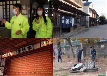 事業所の写真は、幼稚園・飲食店・商店・映画村の様子です。