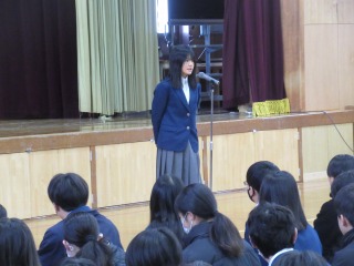 私の今年の目標は整理整頓です。生徒会本部として1つ1つのことをしっかり行っていくためにも、自分の身の周りのことを整理できるよう、頑張ります。みなさんの今年の目標は何ですか?目標を決めてその実現に向けて頑張っていきましょう。