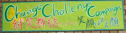 昨年度,生徒会の3C活動(Change Challenge Campaign)の際に,生徒会本部が作ってくれたキャッチフレーズです。笑顔いっぱいの学校でありたいです。笑顔と言えば,私はこの歌が好きです。手話コーラスで聴いたのですが,その歌詞をいっぺんに気に入りました。