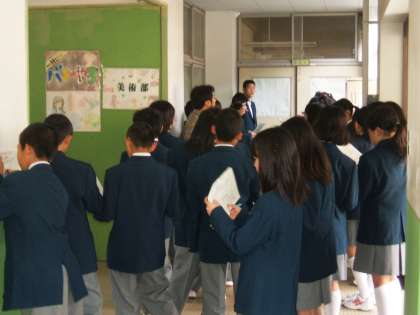 理科室はどこ?コンピュータ室は?教室移動の多い中学校。入学したばかりの1年生が,校内めぐりをしています。小学校の校舎と,ずいぶん違うかな?