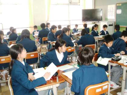 1年生の校舎を歩いていたら,国語の授業でグループの話し合いをしていたので入ってみました。作品のはじめと終わりの表現の違いについて,気づいたことの意見交換をしているようです。その後,気づいたことをみんなの前で発表しています。積極的に手も挙がっています。発表する時は,「どうしてそう考えたのか」という根拠まで,きちんと述べていました。