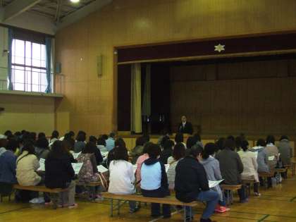 3年生の保護者を対象に,修学旅行説明会を実施しています。5月11日からの2泊3日で,沖縄方面(伊江島・本島)を訪問します。取組の成果,今まで培ってきた力が十分発揮できるような修学旅行にしたいです。