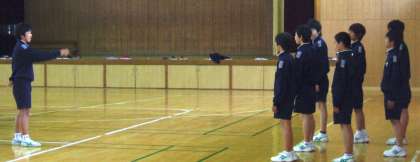 体育の授業で,集団行動の練習をしていました。グループごとに,リーダーが脚の動きや並び方を指示しています。ピシッと決まるとカッコイイ!