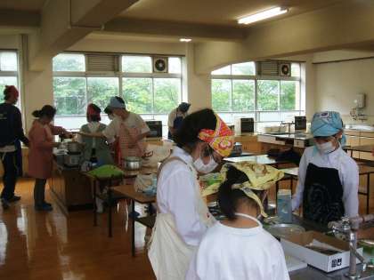 1組は,調理実習を行っています。炊き込みご飯と卵焼きを作ります。なかなかの包丁さばきですよ!