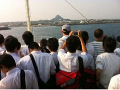 伊江島が,目の前に近づいてきました。