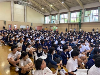 生徒会本部・執行部が中心となり、全校生徒が生徒総会を開会しました。壇上で話す生徒だけでなくフロアにいる生徒の真剣な様子に素晴らしい学校だと思いました。