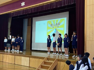 学級目標の発表ではどのクラスもわかりやすくねらいや思いを発表できていました。目標を言葉だけで終わらせずに、一人一人が常に意識して活動してくれると、更に素晴らしい学校・学級になります。期待しています。