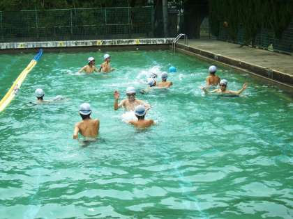 バスケット部とサッカー部がきれいに掃除してくれたプールで,水泳学習が始まっています。今日は気温も高く,とても気持ちよさそうです。