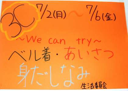 生徒会3C活動では,生活委員会が中心となって,この規範意識の向上に取り組んでいます。