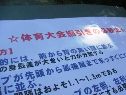 体育の授業では,体育祭の練習も進んでいます。今日は,大縄跳びの練習をしていました。「綱引きの必勝法」という掲示物も発見。
