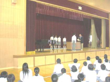5時間目に,全校集会を行いました。いつものように,校歌から始まりました。1年生の列の横にいたのですが,毎回歌っている成果で,きれいな歌声がよく聞こえてきました。