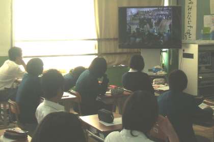 今日の3年生の道徳は,「4分間の奇跡」という題材で学んでいます。ハンディキャップがありながらもバスケットチームのマネージャーとして頑張る主人公。最後の試合の4分間,初めて彼はゲームに出場する…という映像を見て,「よりよく生きる」ということについてみんなで考えています。
