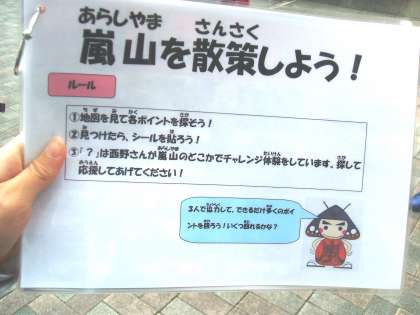 1組の1年生が,嵐山に校外学習に出かけました。自分たちの力で,協力してチェックポイントを探して歩きます。頑張ろう!