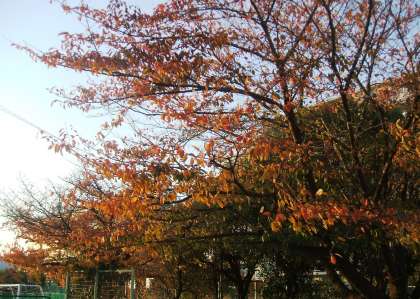 夕方4時過ぎ いこいの広場の紅葉です。夕日を浴びて,風に吹かれて,金色にキラキラと輝いて見えます。