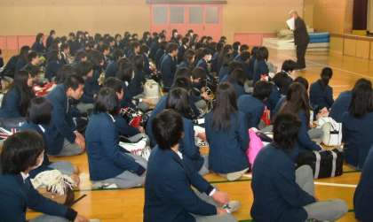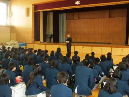 明日は,公立受検日です。5時間目,体育館で前日指導を行っています。校長先生の激励の後,最終の注意を聞いています。ガンバレ!君たちならできる!力を十分発揮してきてください!
