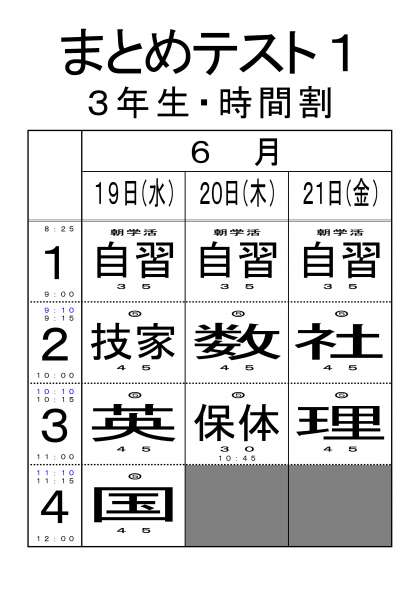 明日19日(水)から3日間、今年度第1回目のまとめテストが行われます。