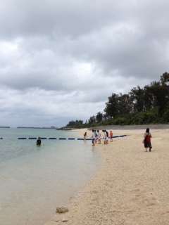 お昼のバーベキューに向けて、伊江島ビーチに集合です。