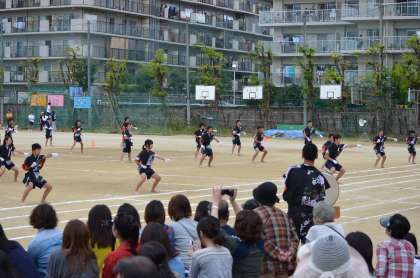 今年から新しい取組として、体育委員による応援団披露を行いました。