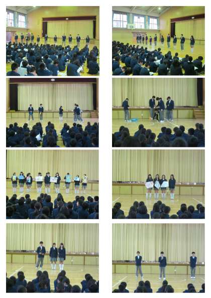生徒会本部役員による生徒会行事や生徒会の各委員会の活動についての説明や各部活動の代表者による紹介が行われました。生徒会のみなさんは今日に備えて、色々な資料の準備やリハーサルなどを続けてくれていました。また、部活動の様子も実演などをまじえてわかりやすく説明してくれていました。出演してくれたみなさんご苦労様でした。