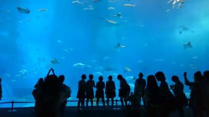名残惜しいでところですが美ら海水族館に別れを告げ、バスに集合、次の目的地本部港に向け出発です。