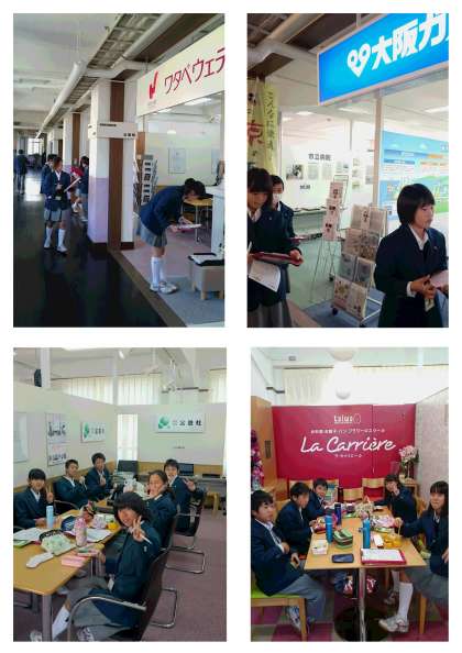 各企業のブースに分かれて、金融の働きなどについて勉強します。たくさんのボランティアのみなさんにお世話になっています。むずかしいけれどしっかりがんばってください。