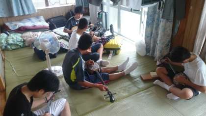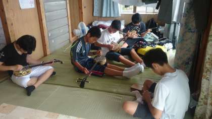 ある民泊では体験で、サンシンを使って、民家の方に指導を受けながらも、自分達で音を探しては、島唄や海の声などを弾いてました!!