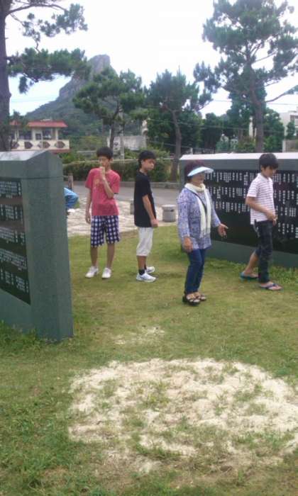 芳魂之搭です。みんなの作った折り鶴が捧げてありました。