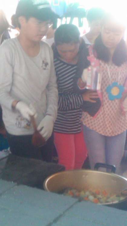 ごはんづくりです!おかずはカレー。それにしてもカレーなべの大きいこと!