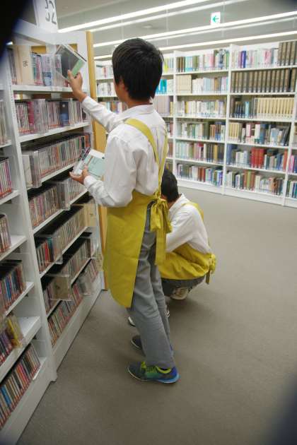【ライフ太秦店】売り場の方に「しっかりしてますね。指示された作業をちゃんとやってますよ。」と言っていただきました。副店長さんが、「チャレンジ体験の中では、一番しんどかったという生徒が多い作業がレジ周りです。」とおっしゃってましたが、レジ周り担当の生徒は黙々と作業を続けていました。