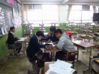 昨日、今日と放課後の1,2年生の教室では、課外学習としてテスト勉強をしている生徒がいます。集中して自習したり、わからないところを先生に聞いたり有意義な時間を過ごしていました。