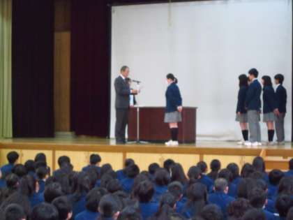 各学年を代表して3年生が校長先生より認証書を受け取りました。