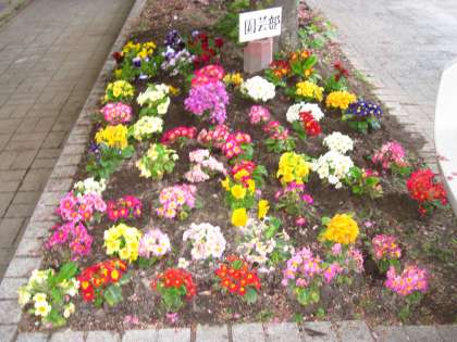 本日、家庭科・園芸部が花壇に花を植えてくれました。急に華やかになりました。