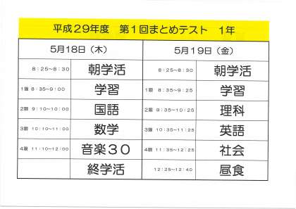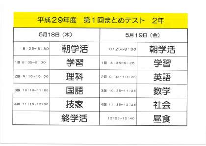 来週の18日(木)、19(金)に第1回まとめテストがあります。