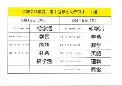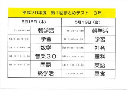3年・1組とテスト範囲と時間割