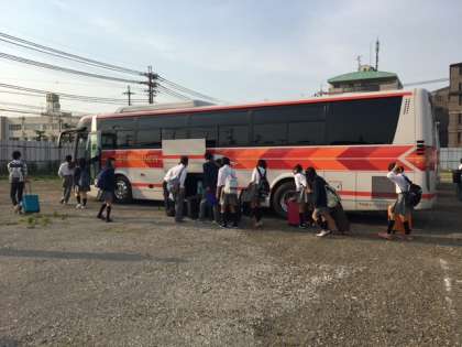 バスに乗り込みます。