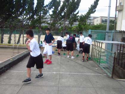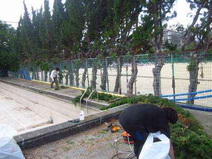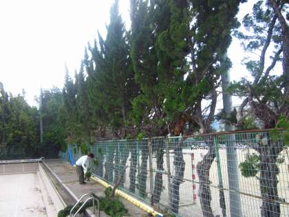 本日はプール敷地に入っていた木々の剪定を行いました。